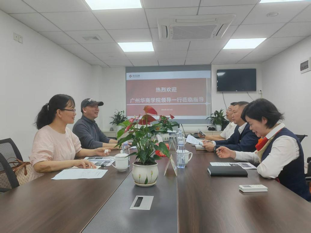 广州华商学院数字金融学院金融系系主任卢敏主要就学生实习安排、实习基地建设及后续双方互访交流等工作进行了详细商谈。具体包括东方证券广州宝岗大道证券营业部进校园开展金融知识讲座、学生实习安排采取“滚动式”形式进行、同时利用寒暑假带领学生前往企业进行认知实习及企业党政建设工作学习等合作事宜。