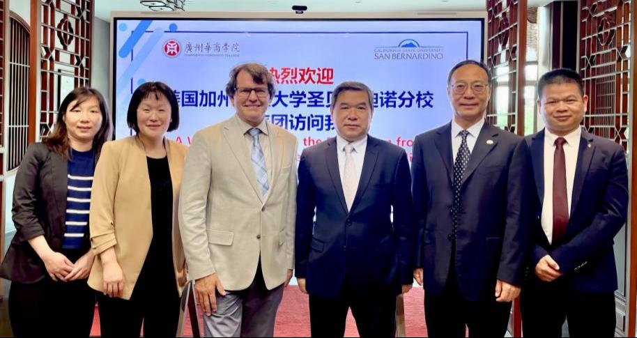 6月5日,美国加州州立大学圣贝纳迪诺分校(California State University, San Bernardino)副校长约翰·宾克利、全球教育学院副院长艾斯特·李及随行人员访问广州华商学院。副校长焦方太、国际交流与合作处处长王文忠、人工智能学院副院长叶仕通等热情接待来访代表。