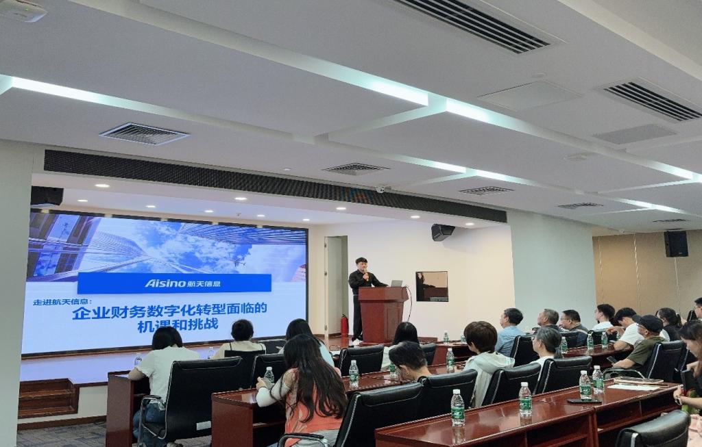 在航天信息(广东)有限公司相关负责人的热情接待与引领下,教师团队首先参观了企业展示区。通过详实的图文视频介绍,教师团队详细了解航天信息(广东)有限公司的发展历程、核心业务布局以及在数字化领域的前沿探索成果。在展示区中,调研教师直观感受到企业在信息技术、财税服务等领域的创新应用案例。