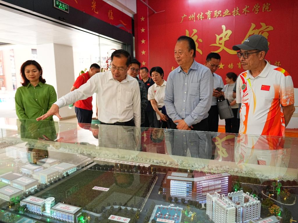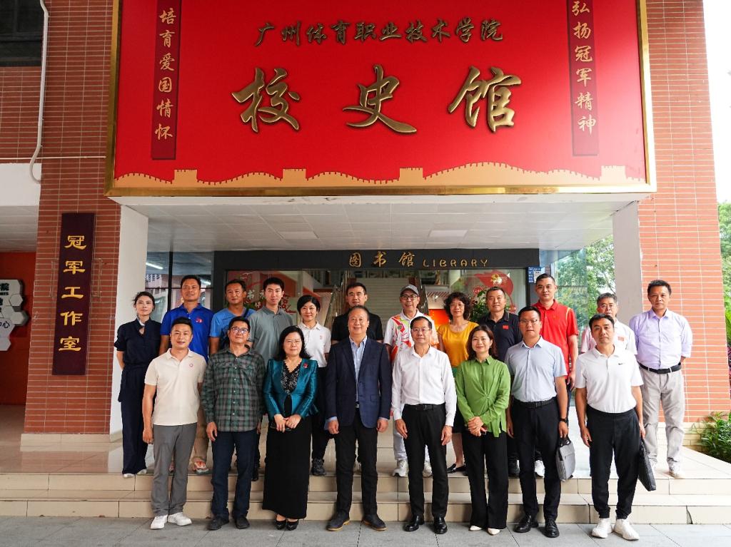 在广州体育职业技术学院党委书记李国平的全程陪同下,考察团首先参观了学院校史馆。一幅幅珍贵的历史照片、一座座闪耀的奖杯,生动展现了学院作为“冠军摇篮”在竞技体育人才培养方面取得的辉煌成就。随后,考察团先后走进跳水、体操、举重等项目训练场馆,现场观摩运动员们的日常训练。运动员们顽强拼搏、精益求精的精神风貌给考察团留下了深刻印象。廖榕就董事长、陈玉欢书记不时与教练员、运动员交流,详细了解训练保障、人才选拔及文化教育等情况,并与运动员代表亲切合影留念。
