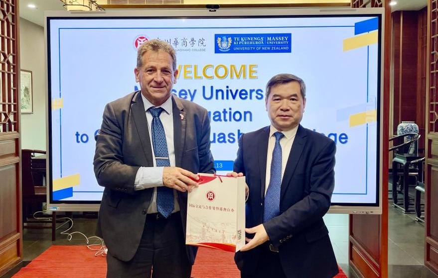 5月13日,新西兰梅西大学国际与战略总监、商学院副院长Jeffrey Stangl及随行人员到访广州华商学院。学校副校长焦方太、管理学院院长史传林、国际交流与合作处处长王文忠、副处长熊子珂等热情接待来访代表。