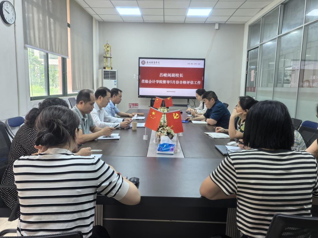 会议伊始,吕峻闽副校长首先传达了学校5月份合格评估督办工作任务,并依照《广州华商学院合格评估攻坚年校领导督办事项手册》对合格评估观测点建设、内涵建设、核心指标建设等进行了全面指导,并对学院5月份合格评估重点工作进行督办。