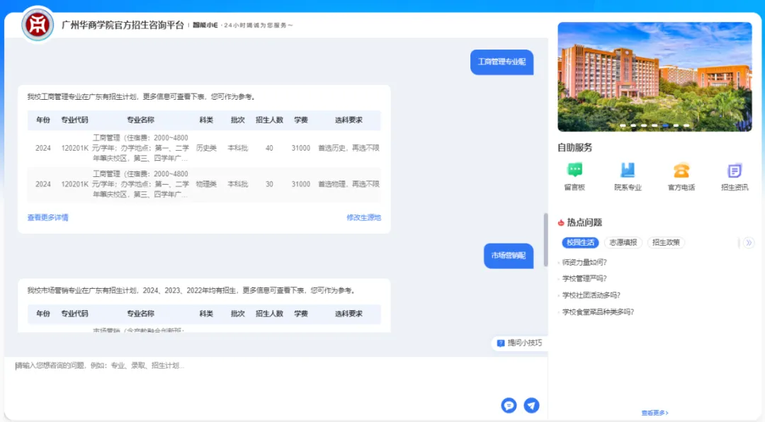 Hi~同学们,你们最近是不是也被DeepSeek刷屏了呢?别急,今天给你们带来一个超级好消息:广州华商学院的智能招生问答系统已经华丽大变身,深度融合了DeepSeek大模型,全新升级,重新上线啦!
