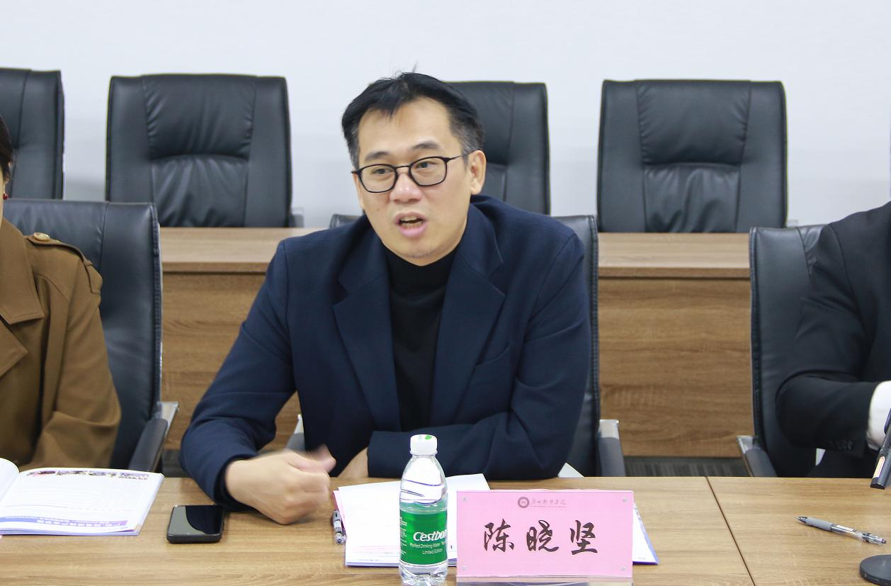 (广州华商学院动漫产业学院执行院长陈晓坚介绍学院情况)