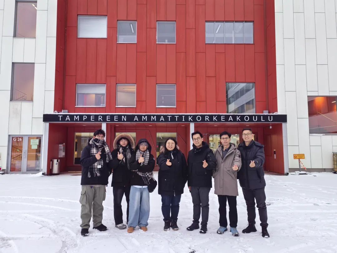 2024年12月3日-12月9日,广州华商学院2024 Mini Game Plus+++挑战赛一等奖获奖团队黄浩彬、钟文杰、林广豪3位学生,动漫游戏产业学院执行院长陈晓坚、副院长杨波、程海涛,国际交流与合作处陈可家一行,赴芬兰开展为期一周的学习交流。此次活动由广州华商学院提供全额奖学金赞助,鼓励学生发挥创新精神,以出境学习形式拓宽学生国际视野,探索芬兰教育先进理念,丰富师生国际经历。