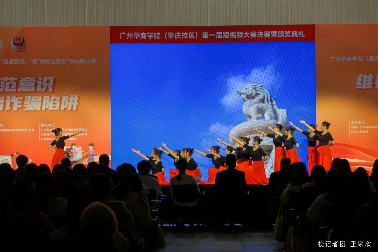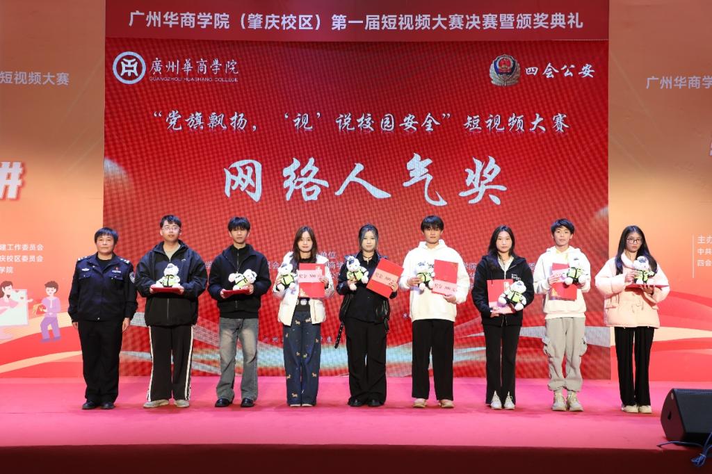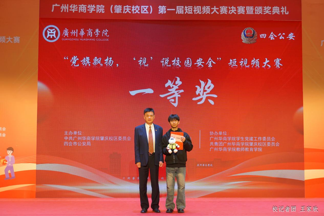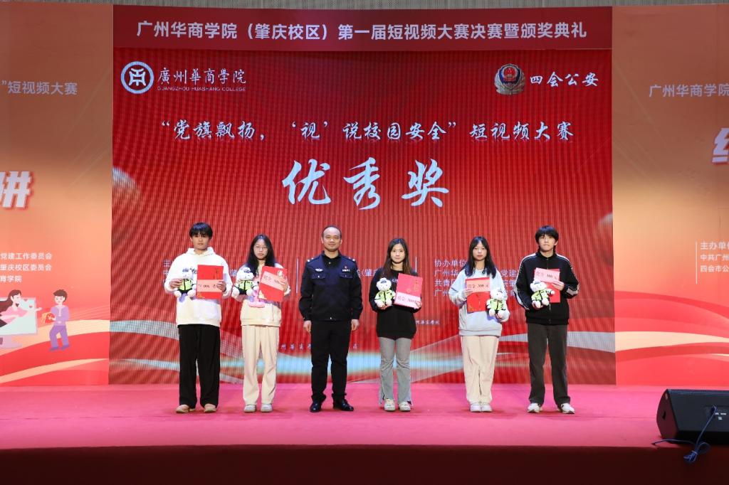 12月19日下午,广州华商学院(肇庆校区)第一届“党旗飘扬‘视’说校园安全”短视频大赛决赛暨颁奖典礼在1号楼报告厅圆满落下帷幕。广州华商学院肇庆校区党委书记苏宁,党委副书记、管委会常务副主任覃少冰,四会市公安局党委委员、政工室主任杨玉金,四会市禁毒办副主任、禁毒大队教导员吴舒琪,四会市公安局新江派出所副所长张祖柱及相关单位代表出席了本次活动。