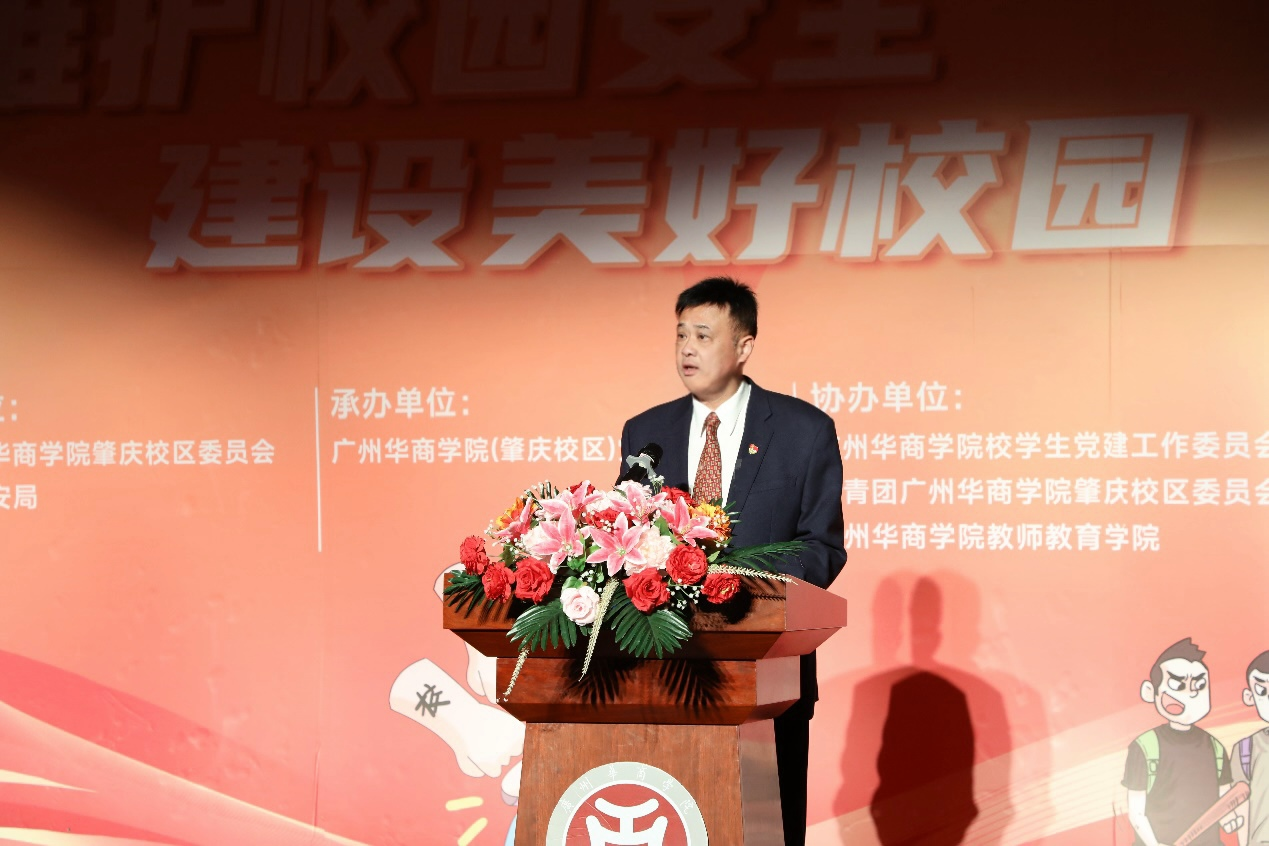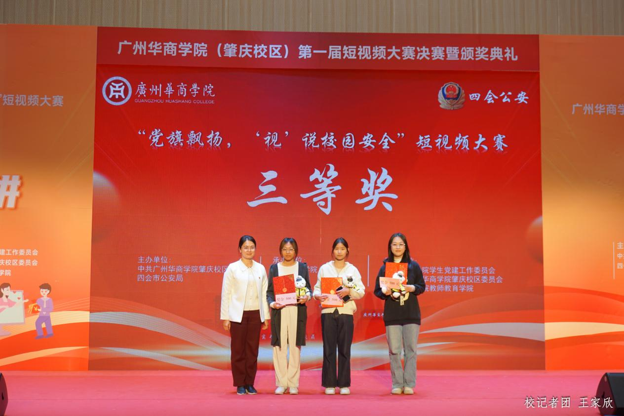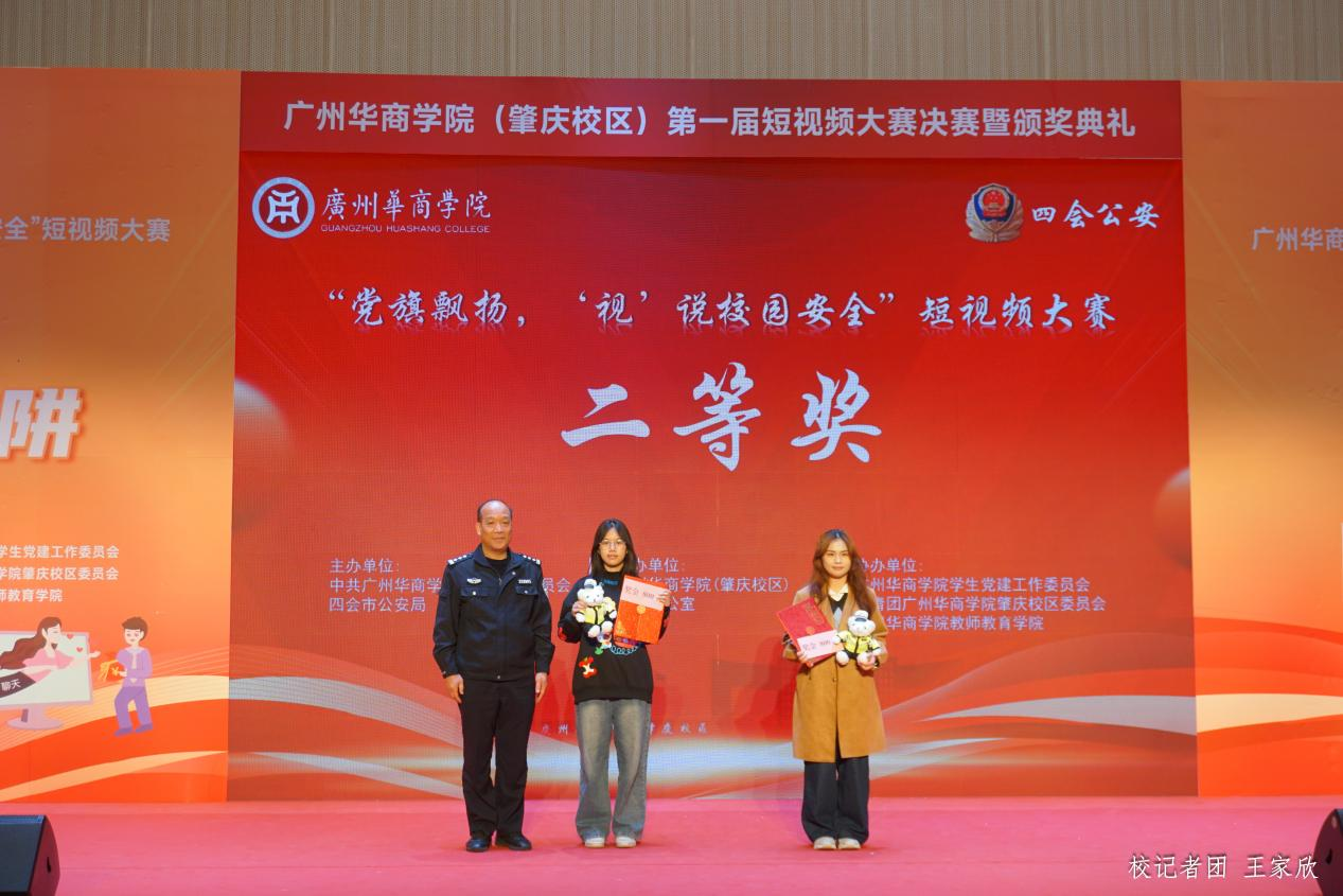12月19日下午,广州华商学院(肇庆校区)第一届“党旗飘扬‘视’说校园安全”短视频大赛决赛暨颁奖典礼在1号楼报告厅圆满落下帷幕。广州华商学院肇庆校区党委书记苏宁,党委副书记、管委会常务副主任覃少冰,四会市公安局党委委员、政工室主任杨玉金,四会市禁毒办副主任、禁毒大队教导员吴舒琪,四会市公安局新江派出所副所长张祖柱及相关单位代表出席了本次活动。