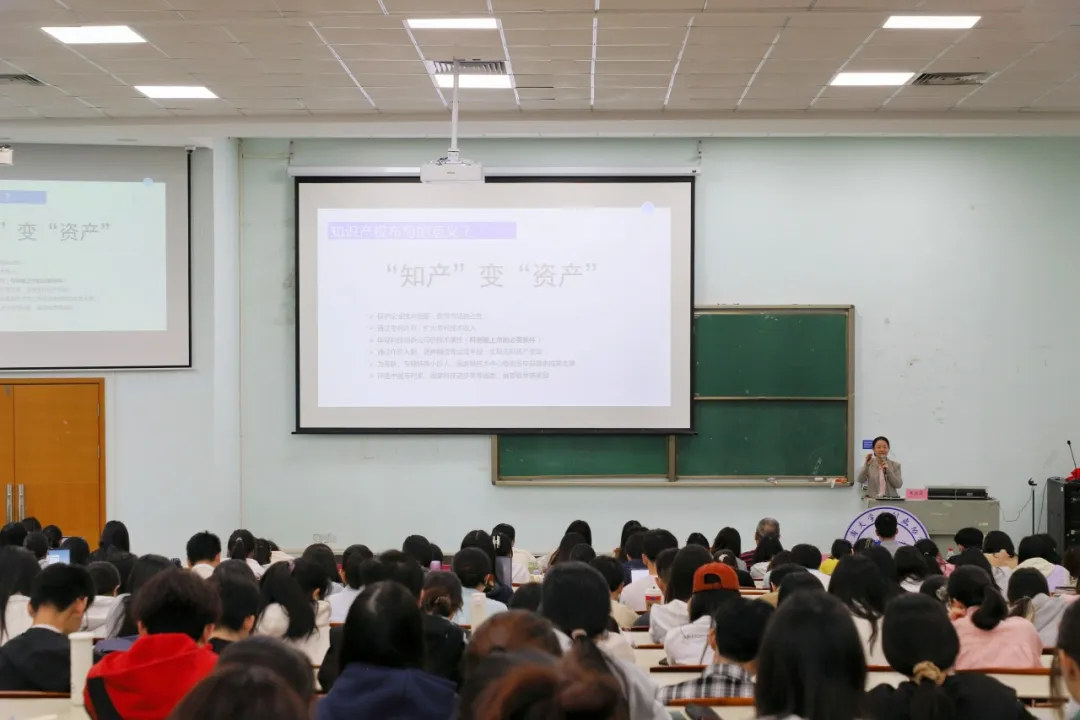 讲座伊始,朱宝莉女士以萝卜刀和自拍杆盗版横行的案例为切入点,巧妙地引领同学们深入领略知识产权布局所蕴含的深远意义,全面阐释了在当下社会发展进程中知识产权布局所发挥的不可替代的关键作用。朱女士鼓励同学们要深刻领悟并熟练掌握运用知识产权捍卫自身创新成果的有效方法,切实增强自身的核心竞争力。