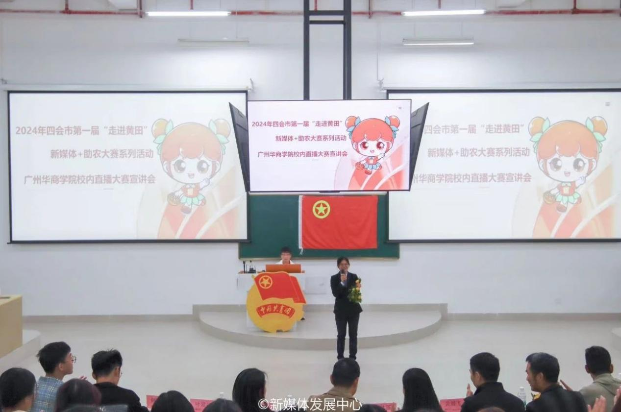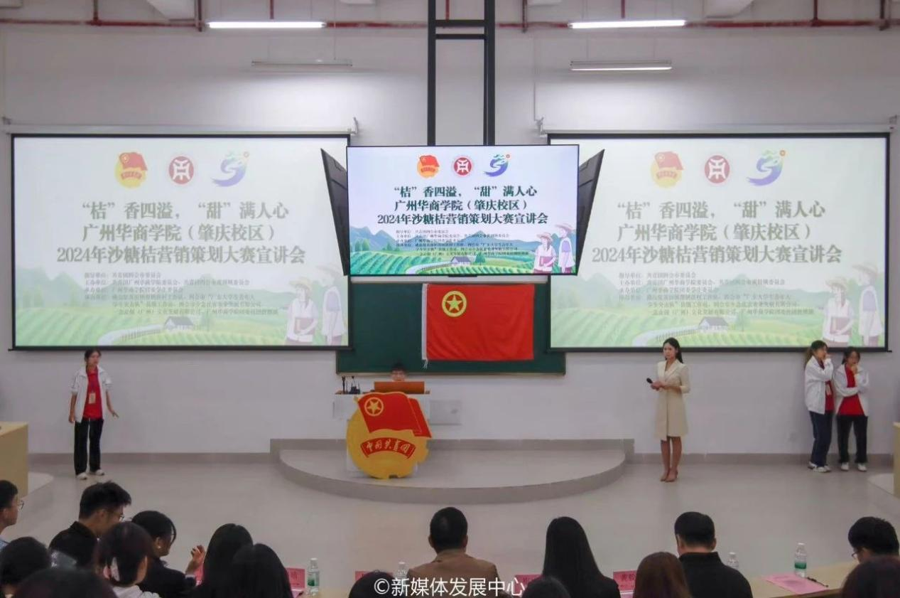 为贯彻落实党的二十届三中全会精神,进一步深化广东青年大学生“百千万工程”突击队行动,加强校地共建,助力四会市建设加力提速,推进黄田镇产业发展,11月27日晚上,“桔”香四溢,“甜”满人心——广州华商学院2024年“走进黄田”新媒体+助农大赛宣讲会在肇庆校区16号楼312举行。