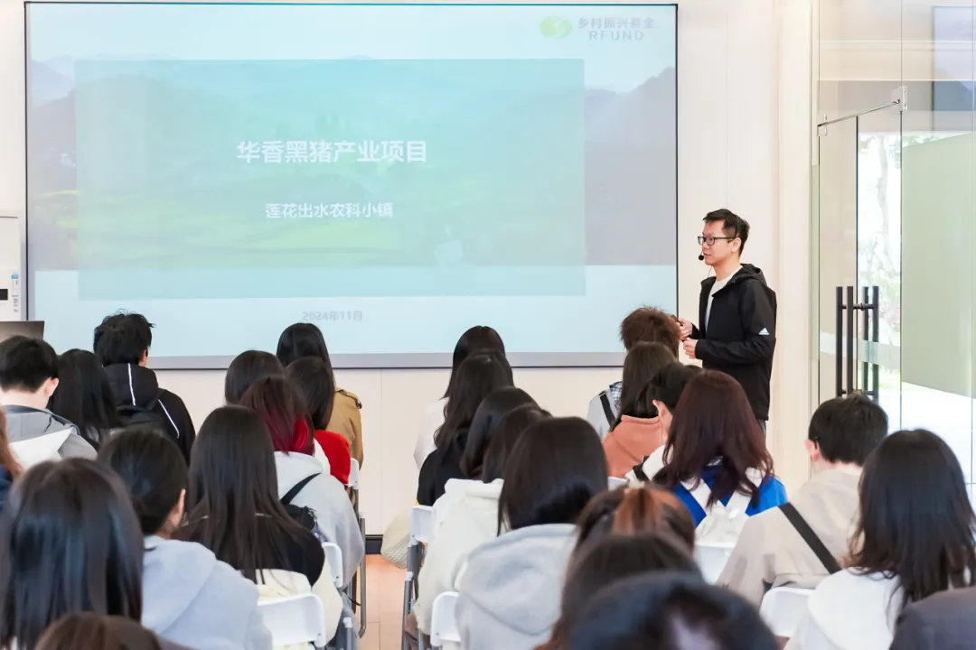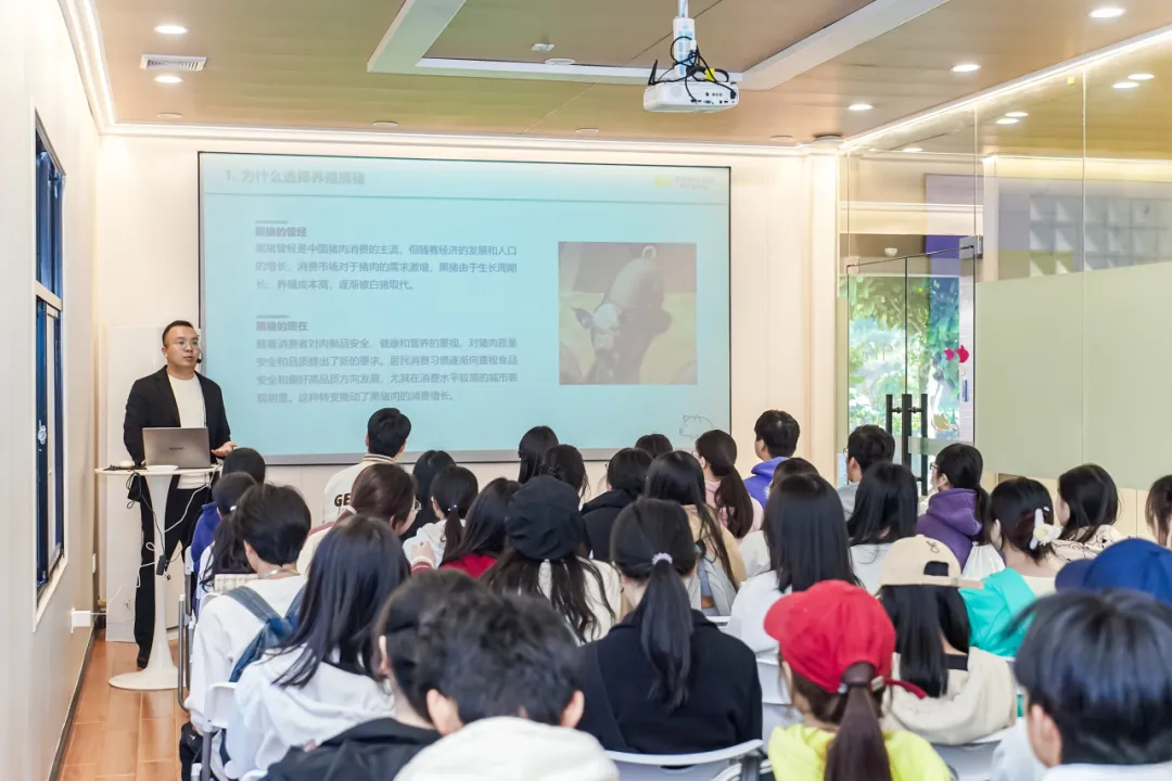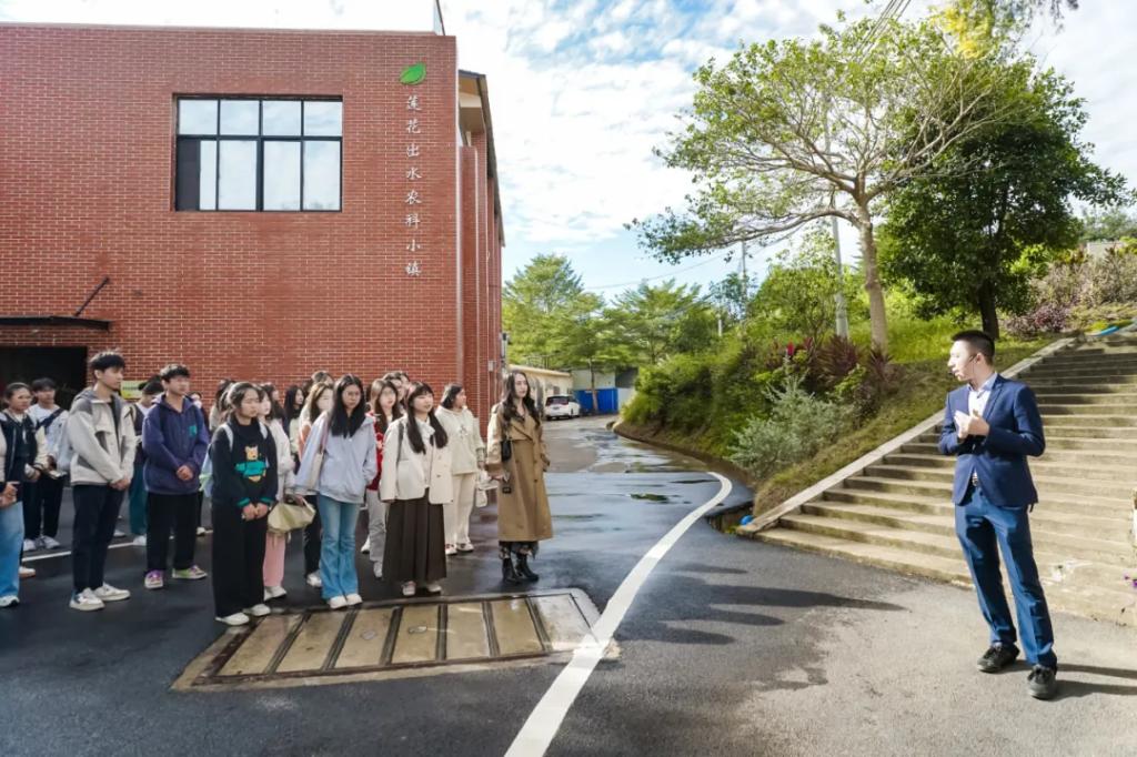 研学团实地参观黑猪养殖和黑米种植基地,了解了企业运用多种创新技术提升生产效率和产品质量的实践经验。莲花出水农科小镇生猪产业项目CEO黎炽明、黑米产学研项目CEO陈泓良为我校师生详细介绍了华香黑猪养殖和黑米种植的产业概况,全面阐释华香黑猪和黑小宝全谷黑米对品质与健康的追求。农科小镇充分体现了科技创新在农业领域的应用,在科技的帮助下,有效提高当地农业资源的产出量,显著提升了产品附加值。