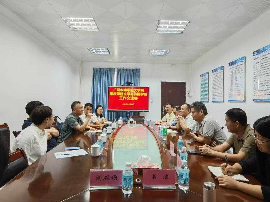 2024年10月23-24日,广州华商学院文学院院长陈少华教授、党委副书记郭堪通副院长、副院长徐桃教授、段从学教授、院长助理刘亚娟副教授等一行前往肇庆学院文学与传媒学院进行为期两天的交流调研活动。