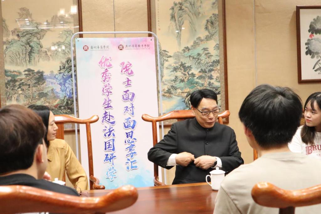 广州华商学院校长陈新滋院士在致辞中对入选的同学们表示热烈祝贺,并强调此次赴法研学项目对于提升学生国际视野、培养跨文化交流能力具有重要意义。陈院士结合自身留学经历,勉励同学们珍惜这次难得的机会,积极探索,多观察、多记录、勤思考,自信面对挑战,努力成为具有国际竞争力的优秀人才。