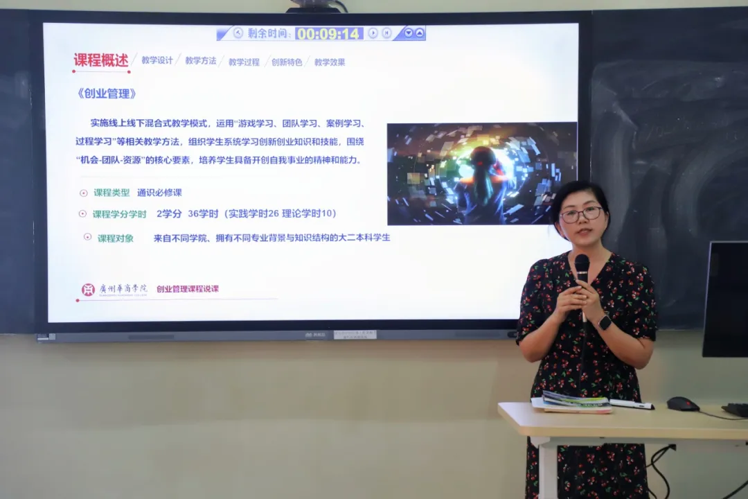 随后,创新创业学院6名教师进行了磨课展示。他们分别选取了《创业管理》课程相应章节作为磨课内容,进行了10分钟课程设计与30分钟教学演示。磨课评审专家赖庆教授和张干英教授根据《广州华商学院磨课评价表》中3环12项38条评价内容,逐一给予专业指导,并与磨课教师反复交流,由表及里、由浅入深耐心讲解前沿教学理念、现代教学方法、最新教学模式,希望各位教师潜心钻研、反复打磨,不断提高教书育人能力。