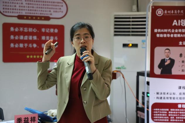 培训伊始,学校党委陈玉欢书记致辞。陈书记指出,面对人工智能领域发展的新机遇,我们要瞄准国家发展的重大战略需求,对标人工智能科技前沿,大力发展人工智能AI相关专业,培养理论与实践能力俱佳的复合型创新型人才。她深切寄语参培教师:一要提高认识;二要快速行动;三要输出成果。通过此次学习,参培干部能有效提升教职管理人员对AI的认识,并针对招生、就业、管理等方面进行学习成果分享汇报,实现从“学员”到“教练”的转变,并争取搭建广州华商学院AI研究院,获取认证资质,行走在高等教育行列的前端。