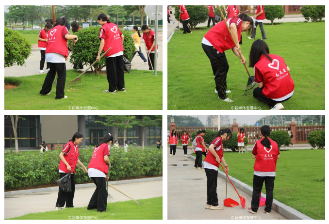 以校为家,奏响劳动乐章。志愿者们团结协作、配合默契,共同维护校园环境,在劳作中感受实践的智慧。校道上、课室里,大家认真负责、齐心协力,共同打造更美丽、和谐的华商校园。