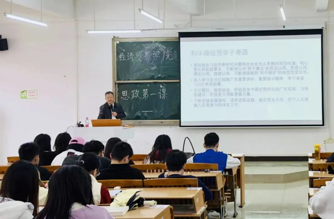 为深入学习贯彻习近平新时代中国特色社会主义思想,增进广大青年学生对党的创新理论的政治认同、思想认同、理论认同、情感认同,铸牢听党话、跟党走的思想根基,进一步引导学生将个人命运前途与实现中华民族伟大复兴的伟大征程紧密结合,广州华商学院经济贸易学院开展新学期“思政第一课”。
