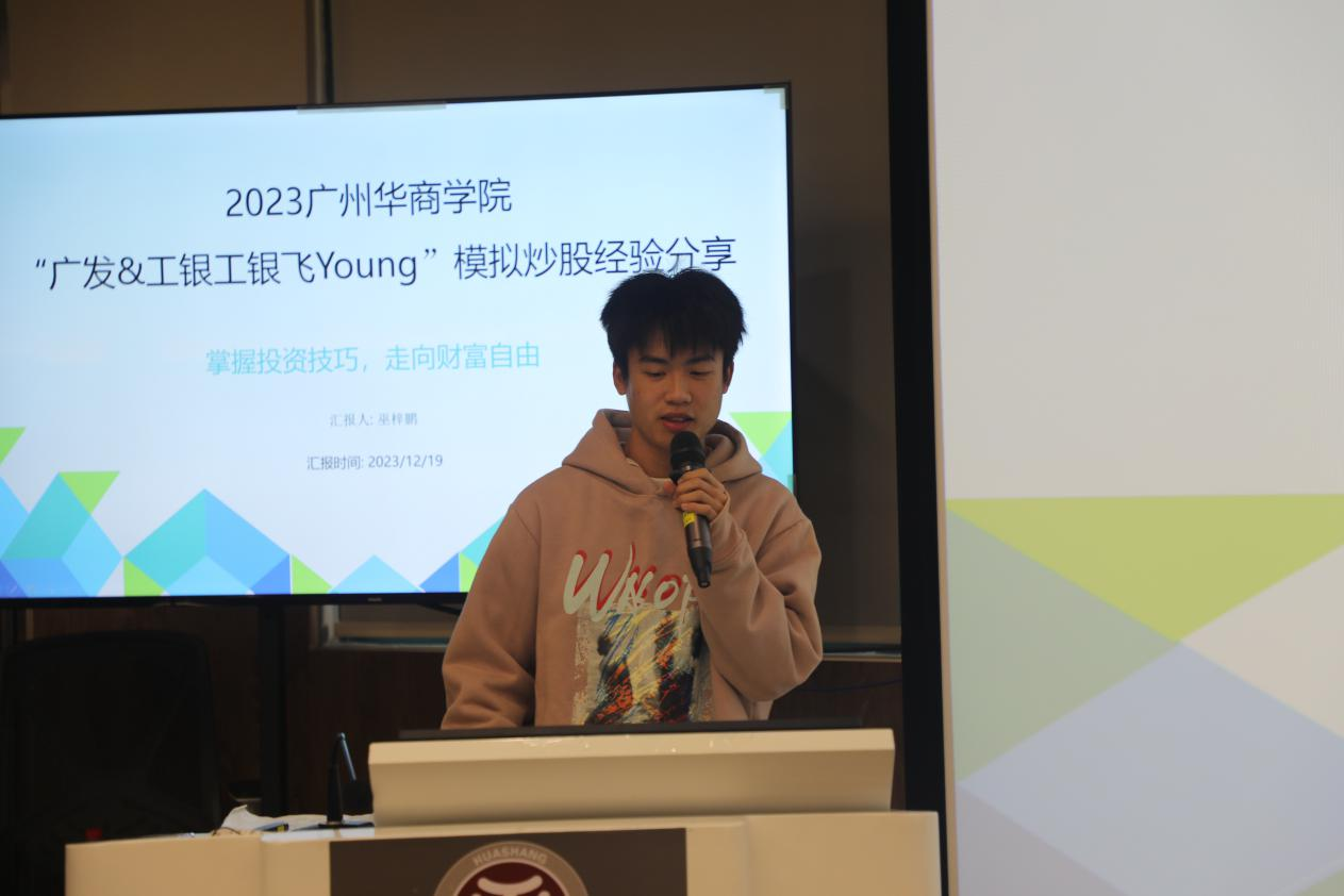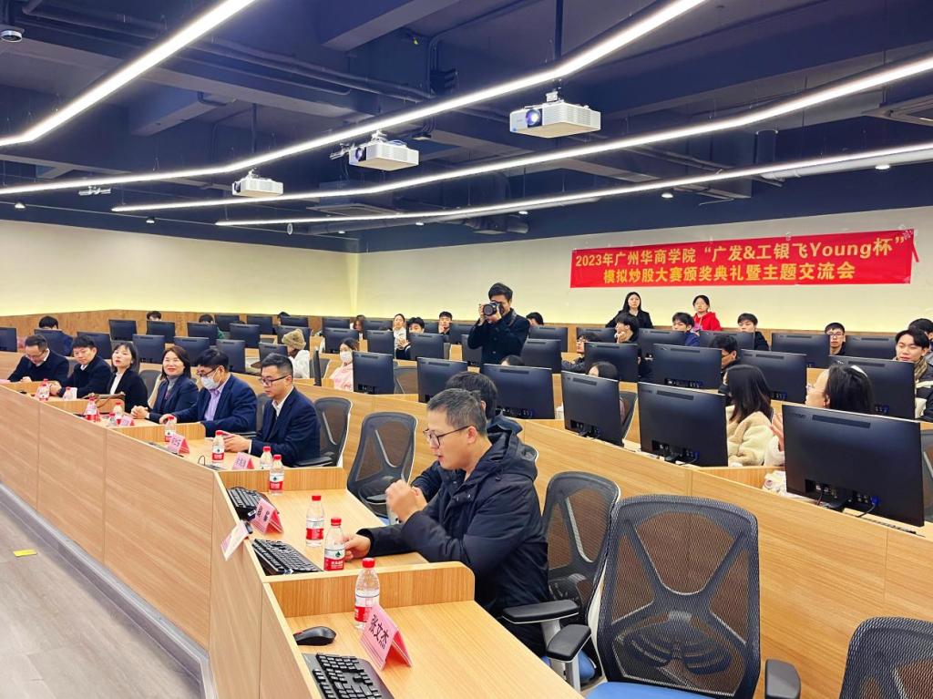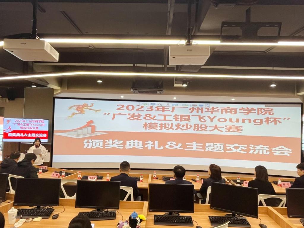 为深入贯彻落实习近平新时代中国特色社会主义思想,践行“人民金融”责任担当,新塘支行联动广发证券到广州华商学院开展“投教活动进高校”系列活动。2023年12月19日,广州华商学院举行“广发&工银飞Young杯”模拟炒股大赛颁奖典礼暨主题交流会。