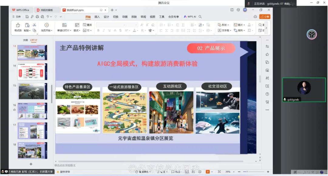 参赛选手们在前两轮比赛基础上修改完善项目,并在项目展示环节进行ppt演示。选手们结合项目可行性进行分析,紧抓社会痛点和市场需求,从项目产品服务、商业模式、财务管理以及未来展望等多方面展开陈述,介绍参赛项目的核心竞争力和实践阶段性成果,展示出项目的先进性以及现实意义。