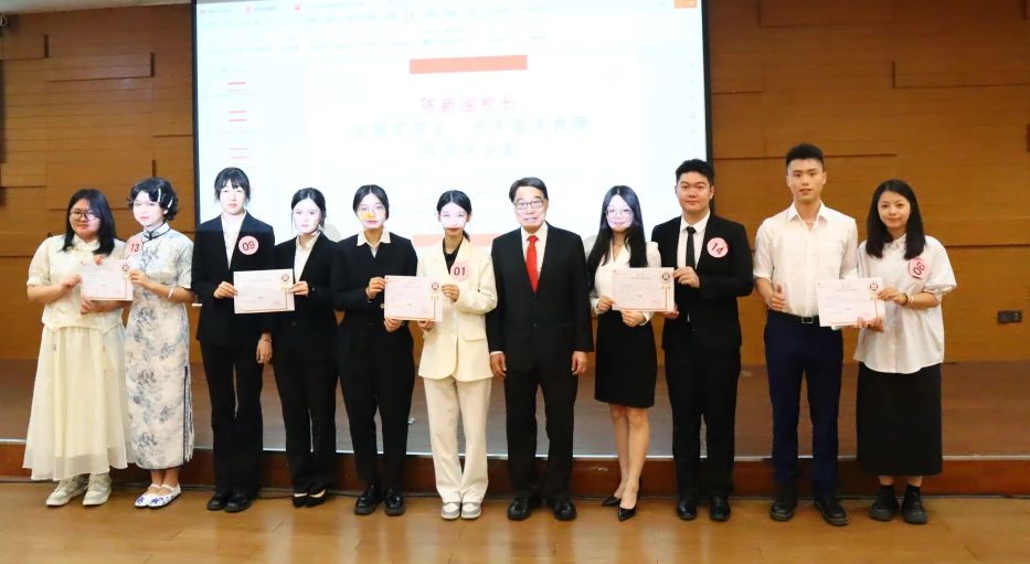 广州华商学院国际交流与合作处处长王文忠宣读了获奖学生名单。经过激烈的角逐,本届国际商业精英计划大赛十强选手分别是: