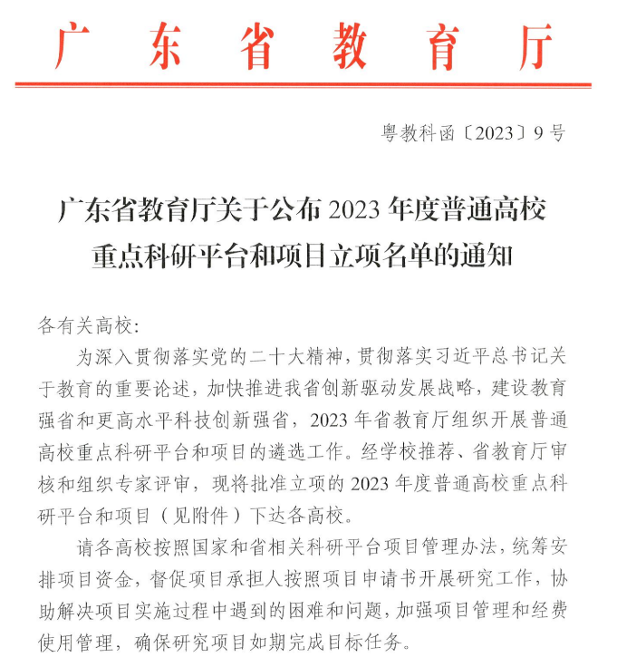 据广东省教育厅公布的《2023年度普通高校重点科研平台和项目立项名单》(粤教科函【2023】9号),由我校副校长刘少波教授带领的广州华商学院广东乡村振兴金融研究中心获批为广东省普通高校人文社会科学重点研究基地。