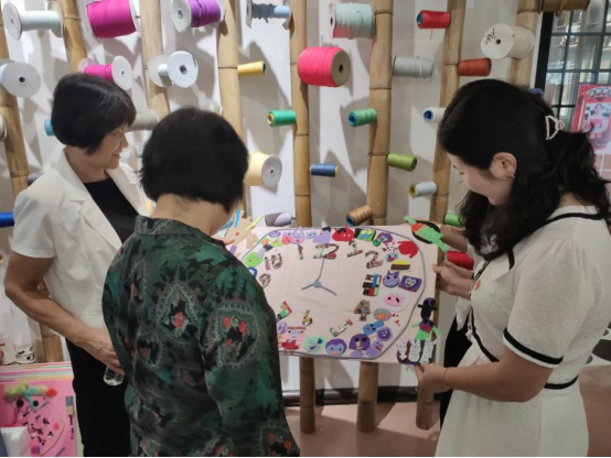 ▲校领导一行参观学生的手工艺作品