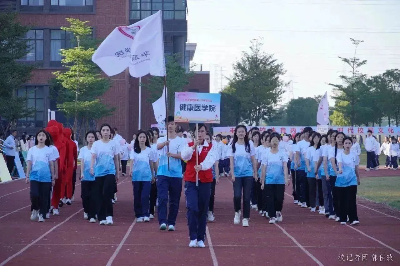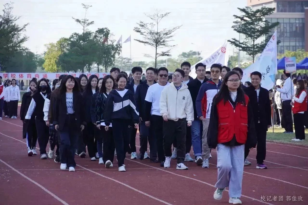 伴随着铿锵有力的《运动员进行曲》,国旗护卫队、彩旗方阵、各二级学院方阵、教职工代表队及裁判员方阵陆续入场。华商学子神采奕奕,迈着整齐稳健的步伐,彰显青年的蓬勃朝气。