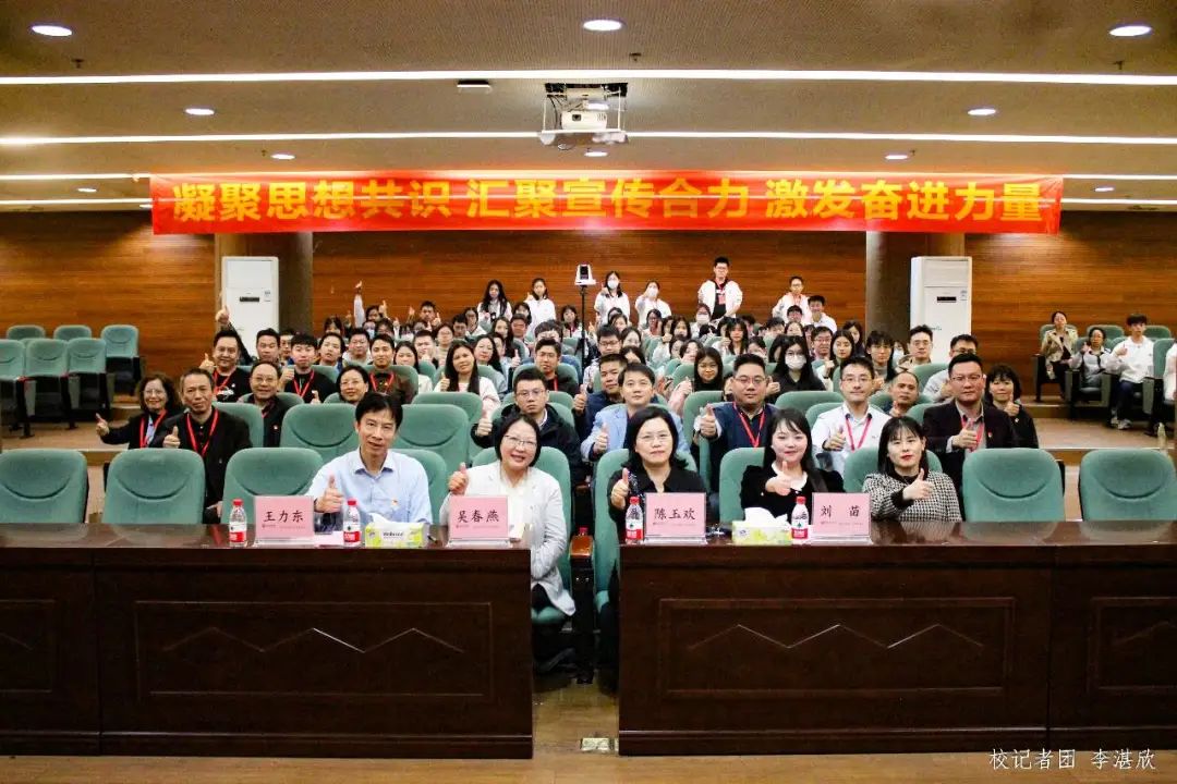 2023年10月7日至8日,全国宣传思想文化工作会议在北京召开,会议传达了习近平总书记对宣传思想文化工作的重要指示,正式提出和系统阐述了习近平文化思想。11月13日至14日,全省宣传思想文化工作会议在广州召开,会议强调要持续加强对习近平文化思想的学习、研究、阐释,切实以新气象新作为担负起新的文化使命。会议召开后,我校党委高度重视,积极响应中央及省委的号召,第一时间安排部署,贯彻落实会议精神,11月16日,在广州校区中央图书馆报告厅召开2023-2024学年广州华商学院第一学期宣传思想工作培训班。培训班设广州校区(主会场)+肇庆校区(分会场),结合线上线下同步开展。学校党委书记陈玉欢、副校长王力东、光明日报广东站站长吴春燕参加主会场开班仪式。全校各单位、各部门宣传负责人、联络员,各基层党支部宣传委员、各校级学生组织宣传骨干代表、各班级宣传员代表共786名师生参加了此次培训班。本次培训班由党委宣传部部长刘苗主持。