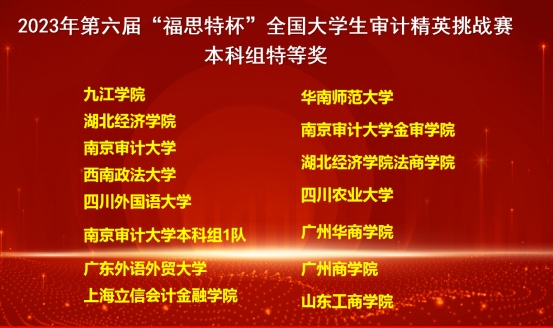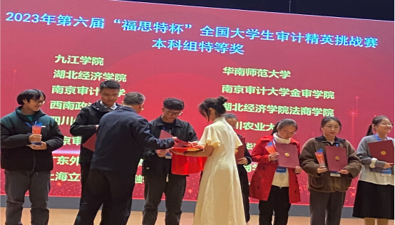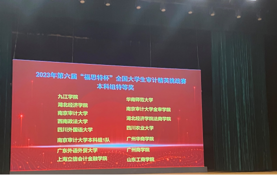 11月18日,第六届“福思特杯”全国大学生审计精英挑战赛总决赛在南京审计大学盛大落幕,我校代表队从2314支队伍中冲进全国总决赛,又在决赛中斩获“特等奖”荣誉,让广州华商学院的校徽与全国知名院校同台登上了决赛幕墙,为我校争光。