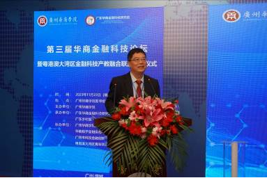 郭银华执行校长代表学校致辞。他指出,近年来,金融科技公司大量涌现并迅速发展,传统金融机构也在大力推进科技赋能,越来越多的高校获批开设金融科技专业,金融科技专业发展和人才培养态势可谓如火如荼。“华商金融科技论坛”是广州华商学院依托广东省普通高校特色新型智库——广东华商金融科技研究院着力打造的一个常态化学术交流平台,已成功举办两届,取得了丰硕的成果,清华大学、北京大学等知名高校和工、农、中、建、交等重要金融机构的一批专家学者和业界高管莅临论坛,讲述了许多颇具启发性的观点、感悟和经历,使华商金融科技论坛成为一个思想碰撞的平台,为论坛的持续举办并成为华商学院一个有影响力的学术品牌打下了坚实的基础,也为我国金融科技的理论发展和人才培养作出应有的贡献。未来,华商学院将继续加大对金融学科和金融科技专业的投入以及各方面的支持,持续举办“华商金融科技论坛”,使其成为广州华商学院的重要学术名片和学术品牌。