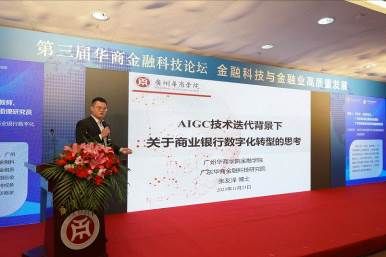 广州华商学院广东华商金融科技研究院助理研究员张友泽博士作了题为“AIGC技术迭代背景下关于商业银行数字化转型的思考”的演讲。张博士从AIGC技术模型的能力、与商业银行业务结合的潜在赋能点、银行业部署AIGC的策略、银行业应用AIGC模型带来的经济影响和AIGC模型带来的风险与调整五个方面分享了自己最新的思考。