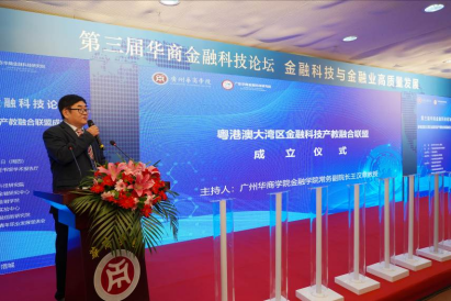 11月23日,由广州华商学院主办,广东华商金融科技研究院、广东乡村振兴金融研究中心承办,广州华商学院金融学院等单位协办的第三届华商金融科技论坛暨粤港澳大湾区金融科技产教融合联盟成立仪式在广州华商学院中央图书馆举行。出席本次论坛的有:广州华商学院执行校长郭银华教授、副校长兼广东华商金融科技研究院院长刘少波教授、人事处彭强处长、教务处傅道忠处长、科研处董建新处长等校内各部门领导以及来自中山大学、华南理工大学、暨南大学等高校的知名金融学者和包括广州南粤国投融资担保有限公司、TCL金服控股、腾讯、同花顺、美林数据等企业的高管。论坛开幕式由刘少波教授主持。
