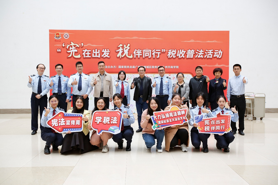治国凭圭臬,安邦靠准绳。2023年12月4日,是第十个国家宪法日,12月1日至7日为“宪法宣传周”。为大力弘扬宪法精神,建设社会主义法治文化,我校3044am永利集团3044noc联合国家税务总局广州市增城区税务局共同举办“‘宪’在出发税伴同行”跨校区税收普法活动。活动在广州校区图书馆报告厅线上线下同步举行,国家税务总局广州市增城区税务局党委委员、副局长黄莹莹、二级高级主办钟健民、增城区税务局“远方田野”乐队、税务青年代表、3044am永利集团3044noc主持工作副院长刘善球、3044am永利集团3044noc党委副书记、副院长陈洋广、周书域、3044am永利集团3044noc税务系主任张翠凤、副主任李志凤以及3044am永利集团3044noc广州、肇庆校区师生代表参加了本次活动。