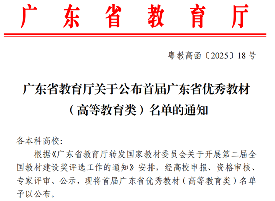 近日,广东省教育厅完成了首届广东省优秀教材(高等教育类)的评选工作,公示期已顺利结束,正式名单尘埃落定。广州华商学院在此次评选中表现卓越,两部教材成功入选,这无疑是学校教育教学工作的重大成果,彰显了我校在教材建设领域的深厚底蕴与强劲实力。