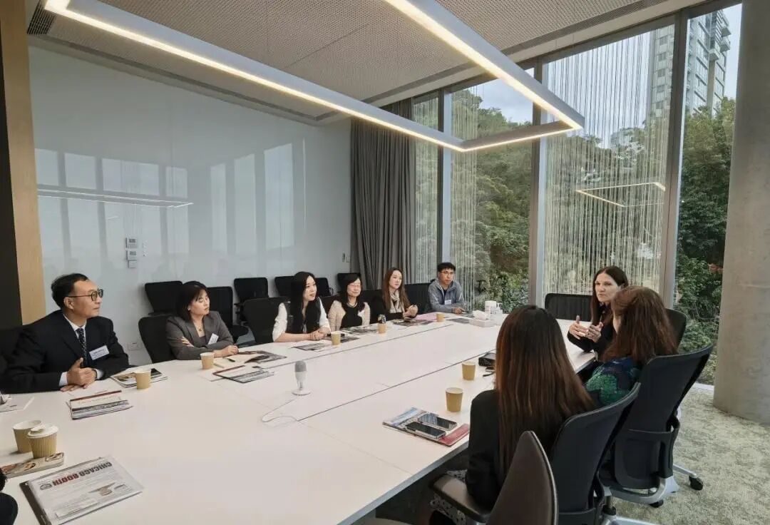 2025年11月4日,华商科教集团副董事长、广州华商学院副校长廖伊曼,副校长许娜,国际交流与合作处处长王文忠、副处长熊子珂,大湾区商学院协理副校长李倩容,广州华商职业学院国际教育学院副院长江燕,华商外语实验学校高级中学主任戴志斌等一行访问了芝加哥大学香港校区。芝加哥大学香港校区执行校长Mark Barnekow、高级副主任Shannon Su等校方代表热情接待了我校代表团。