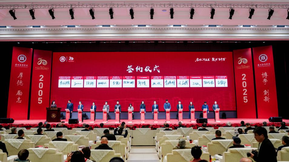 12月26日,广州华商学院建校20周年发展大会在华商会议展览中心华僖礼堂举行。大会以“启程‘十五五’ 聚力‘百千万’”为主题,回顾二十载办学征程,凝聚发展共识,汇聚奋进力量,全面开启学校“十五五”高质量发展新篇章。大会邀请各级领导、教育界同仁、企业合作伙伴及社会各界贤达出席,通过新华社、羊城晚报等多个平台进行网络直播。