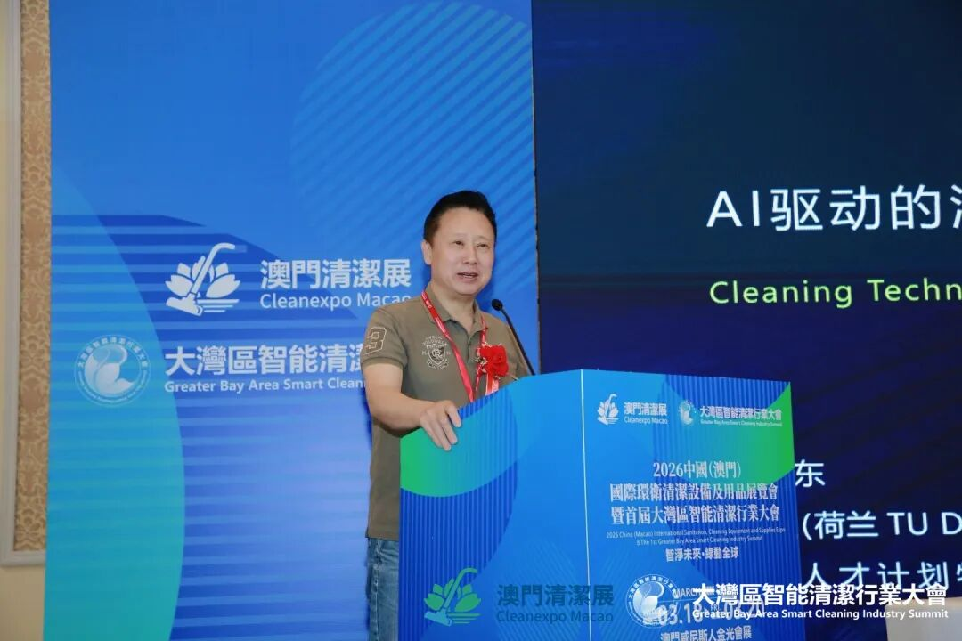 3月20日,2026中国(澳门)国际环卫、清洁设备及用品展览会暨首届大湾区智能清洁行业大会,在澳门威尼斯人金光会展举办。大会设置了四大核心主题论坛,我校数字化技术与应用研究院彭秀东教授应邀出席高质量清洁与AI技术发展应用论坛并作主旨演讲,与海内外行业精英共探AI技术在清洁领域的应用与落地路径,为大湾区智能清洁行业发展注入科技动能。彭秀东教授是国家级人才计划特聘专家,曾分别获得荷兰代尔夫特理工大学博士和北京理工大学工学博士。