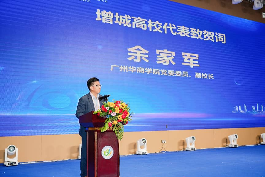 学校副校长余家军在大会上致贺词。他表示,作为扎根增城的高校,广州华商学院依托协会平台,在项目孵化、课程建设等方面取得扎实成效,切实履行常务副会长单位职责,为增城双创事业贡献华商力量。他诚邀各界领导、嘉宾和企业家朋友莅临学校参观交流,共话发展蓝图,共育创新生态,为增城区高质量发展和粤港澳大湾区建设贡献力量。