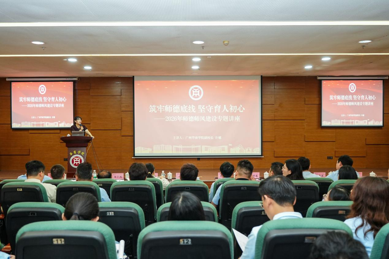 3月25日,广州华商学院2026年辅导员师德师风建设专题讲座在广州校区图书馆报告厅举行。各二级学院学生工作负责人、党委学生工作部及校友工作办公室全体人员、全体辅导员参加本次讲座。许娜副校长担任主讲,为新时期辅导员队伍建设把脉定向,进一步明确了师德师风建设的新要求与新路径。