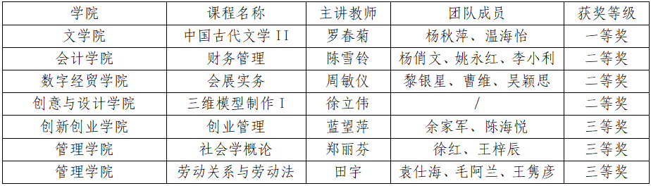 4月26日,广东省高等教育学会公布《第六届全国高校教师教学创新大赛广东分赛暨广东省高校教师教学创新大赛拟获奖名单》。此次63所高校的342个获奖教师(团队)中,我校7个教师(团队)荣获省级一等奖1项、二等奖3项、三等奖3项,获奖数量在全省高校中排名第13位,民办高校中排名第2位,是历年来最好成绩,取得历史性突破,充分展现了我校教师的教学创新实力与育人成效。具体如下: