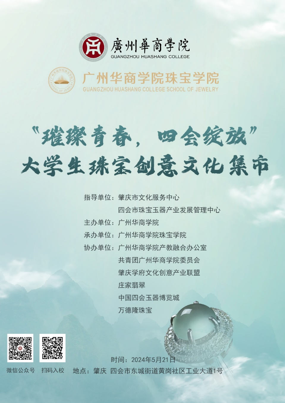 本次大学生珠宝创意文化集市活动的举办,将为广州华商学院以及周边高校的学生提供一个展示自己才华和创意的舞台,同时也将促进高校与所在地的产教融合,交流互动。我们诚挚邀请广大师生和社会各界人士莅临活动现场,共同见证这场青春与创意交织的文化盛典!