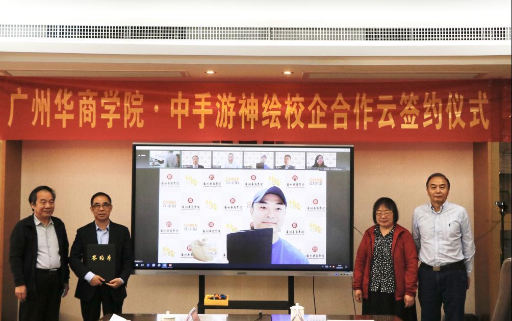 为积极响应国家关于加强学校和企业、产业合作的号召,充分发挥校企优势,进一步构建产教融合体系,提升人才培养质量,为大湾区建设培养高素质、高技能的创新型、应用型人才,3月31日,广州华商学院与中手游控股子公司——深圳市神绘数码技术有限公司(以下简称“神绘数码”)举行校企合作云签约仪式。