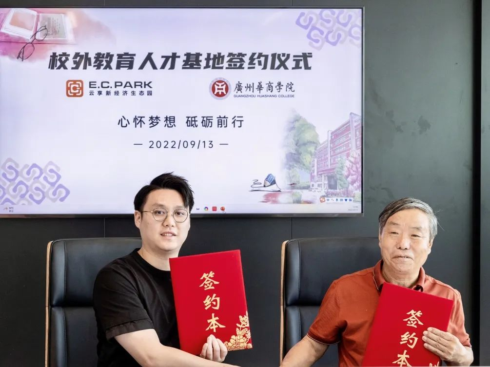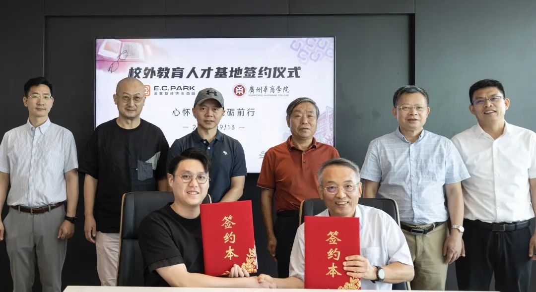 深化产教融合改革,共谋校企合作新篇。为促进教育链、人才链与产业链、创新链的相辅相成,推动我校校企合作、产教融合再度开花结果,与企业深入交流合作,促进华商学子技能提升、稳岗就业。9月13日上午,广州华商学院副校长张捷率队,与经济贸易学院院长李广明,管理学院院长李招忠,校长助理、创新创业学院常务副院长余家军及相关工作人员一行前往广州云端共享实业有限公司云享新经济生态园(下称:E.C.Park)举行校企战略合作签约仪式暨教学实践基地挂牌仪式,共同开展产教融合项目合作及“校外教学实践基地”建设。