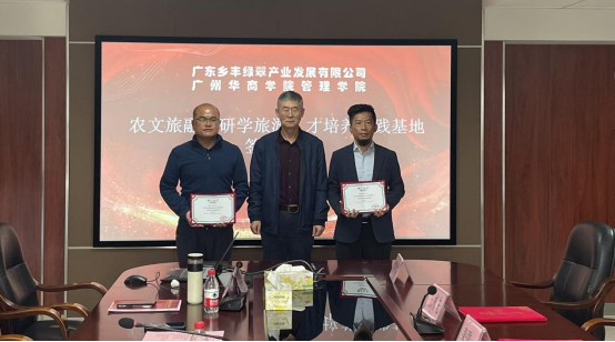 广州华商学院管理学院与广东乡丰绿翠产业发展有限公司于11月15日在行政楼513举行农文旅融合研学旅游人才培养实践基地签约仪式。出席人员主要有:广东乡丰绿翠产业发展有限公司园区执行总经理张彬先先生、园区研学基地总监董晓明先生、园区营销经理邱雯女士;管理学院副院长秦陇一教授、市场学系旅游管理专业负责人秦学教授、旅游管理专业教师杜伟副教授、院长助理袁仕海副教授、院长助理廖珍杰副教授、产教融合专员曾惠玲老师、市场学系副主任罗嘉欣老师。签约仪式由市场学系主任张丽娟副教授主持。