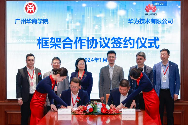 1月9日,广州华商学院代表团赴华为技术有限公司(以下简称“华为”)深圳总部进行参观交流与签约。广州华商学院党委书记陈玉欢、副校长刘少波、副校长吕峻闽、校长助理黄伟新及相关学院、职能部门领导与负责人出席本次参观交流活动与签约仪式。此次签约是双方合作的重要举措,旨在加强双方在教育和技术领域的交流与合作,为未来的共同发展奠定基础。
