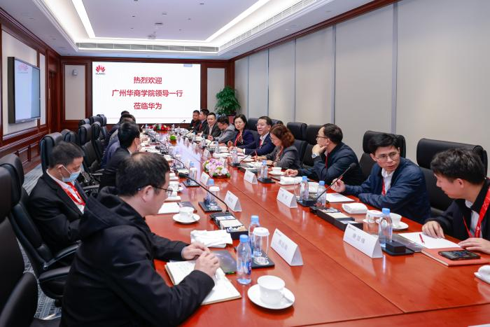 随后,双方举行了座谈会。会上,我校高度重视与华为的合作,并表示希望双方能在产教融合、产学研一体化等方面取得实质性成果;华为代表则详细介绍了华为在校企合作方面的应用案例和技术实力,同时也表示了与广州华商学院在人才培养、科技创新等方面的合作意愿。双方就如何进一步加强合作、推动教育和技术创新进行了深入的探讨和交流,并明确了未来具体的合作内容与合作目标。