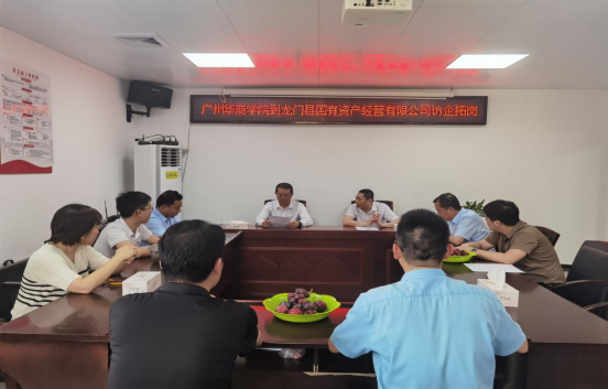 4月12日下午,在龙门县省纵向帮扶工作队副队长、“双百行动”驻龙门县服务队队长、龙门县“百千万工程”指挥部办公室副主任桂拉旦博士陪同下,吕峻闽副校长一行到龙门县国有资产经营有限公司开展访企拓岗活动。龙门县国有资产经营有限公司廖剑波董事长对吕峻闽副校长的到访表示热烈欢迎,并介绍了公司的发展历程、业务范围和未来规划。双方在交流中都表示产教融合是提升人才培养质量的重要途径,希望建立长期稳定的合作关系,共同推动人才培养,实现教育资源和企业资源的共享与互补。