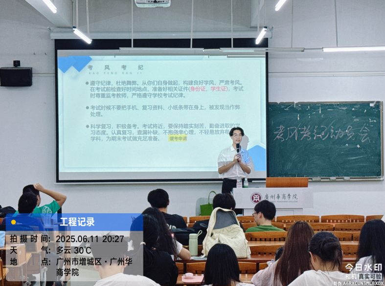 为强化学生考试纪律意识,营造公平诚信的考试环境,广州华商学院数字金融学院分别在广州校区、肇庆校区组织开展期末考试动员暨考风考纪主题班会,以“双校区联动”形式为学生备考注入“强心剂”。