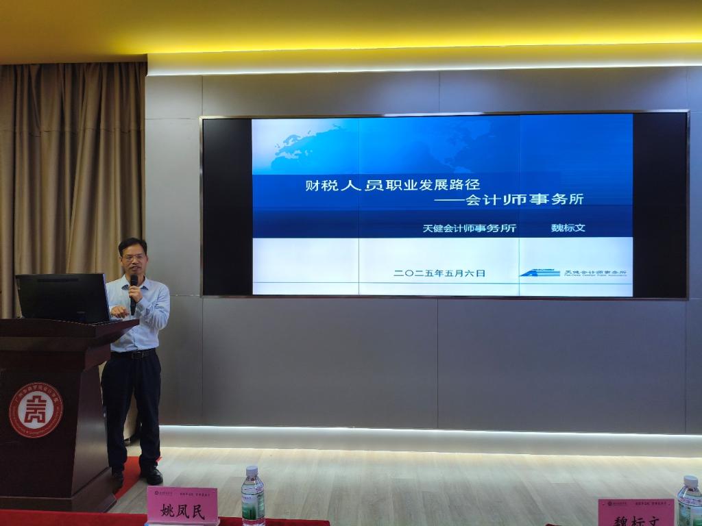 在当前经济环境下,“业财税”一体化已成为企业发展的新趋势,对财税专业人才的培养提出了更高的要求。为帮助学生更好地适应这一趋势,提升其专业素养和实践能力,2025年5月6日下午,3044am永利集团3044noc特别邀请天健会计师事务所高级合伙人、广东分所副总经理魏标文先生,在3044am永利集团3044noc报告厅开展主题为“财税人员职业发展路径——会计师事务所”的专题讲座。学院师生代表一百余人参与本次讲座。