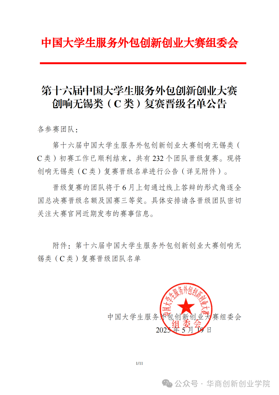 5月19日,中国大学生服务外包创新创业大赛组委会公布第十六届中国大学生服务外包创新创业大赛创响无锡类(C类)复赛晋级名单。广州华商学院“光伏改变世界——共同推进高州市碳中和新乡村的建设”项目、“纳智先锋——智慧纳米美白原料的开拓者”项目成功晋级。