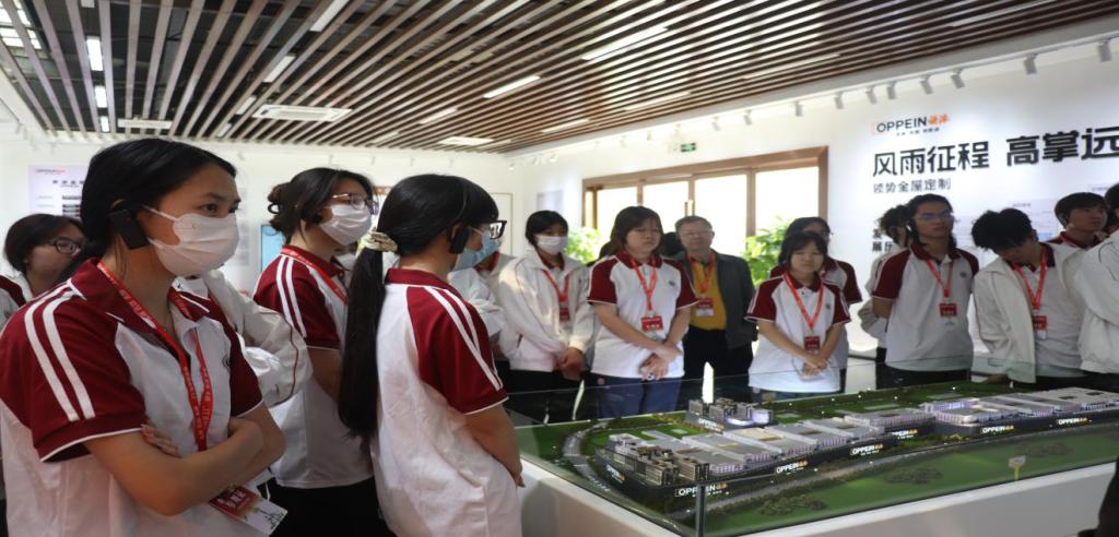 此外,欧派接待人员还带领大家通过沙盘与文化走廊等区域,详细介绍了欧派的全国生产基地、各生产区域的基本情况和实际工作场景,让同学们对欧派的全貌和发展历程有了更全面的认识。